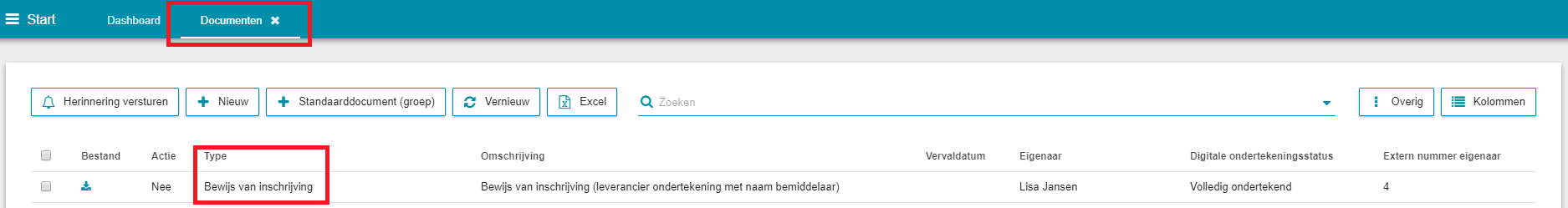Dit type document moet ondertekend worden door de gebruiker en de leverancier. In het artikel Hoe voeg ik een document toe? vind je meer informatie over hoe je een document kunt toevoegen.