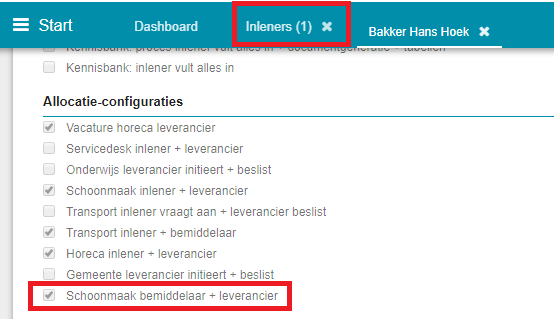 Ga je nu naar de inlener via Start > Inleners, dan is de Allocatie-configuratie aangevinkt bij alle inleners.